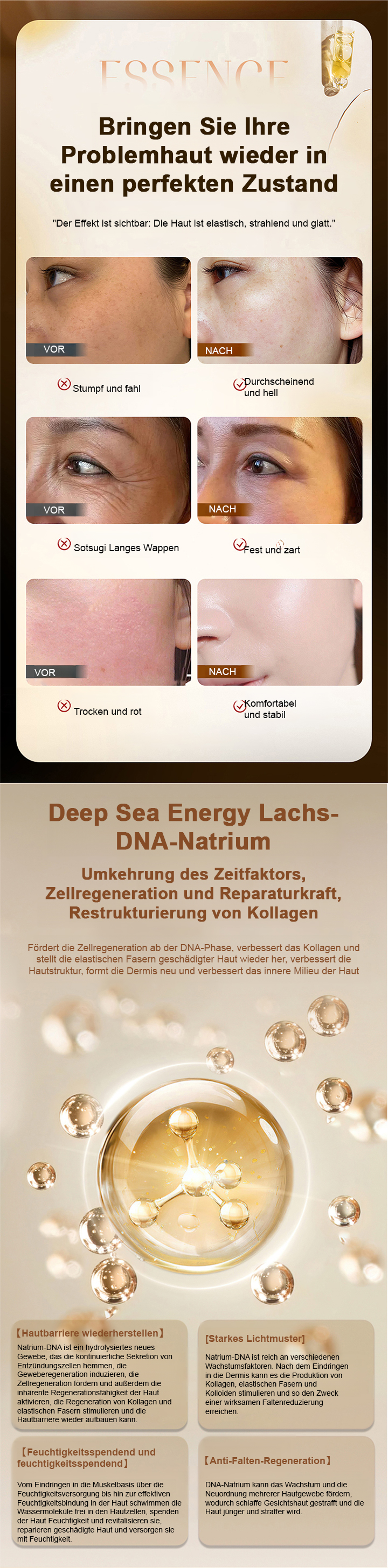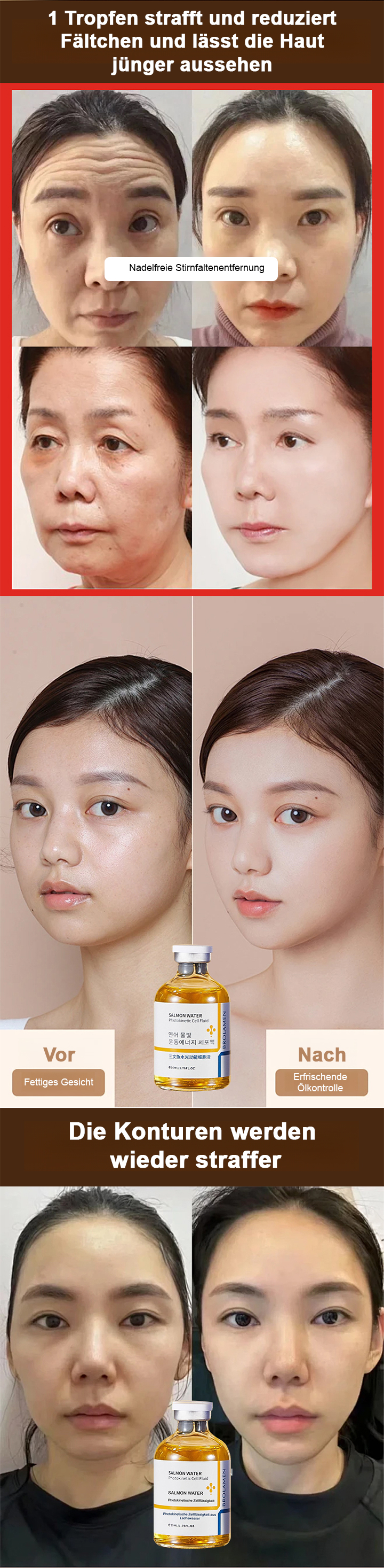 Lachs-Wasser-Glanz-Faltenreduzierendes Serum